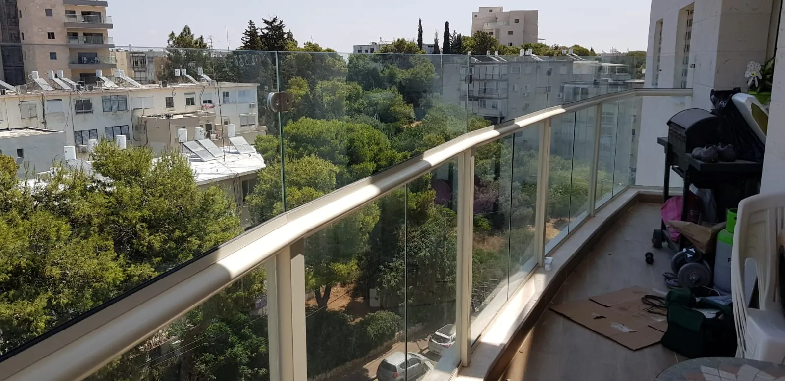 עכשיו נשאר לנו לנקות את הזכוכיות במים כחולים ויש לכם הגבהת מעקה שקופה ובטוחה לבטיחות הילדים והמשפחה בבית .